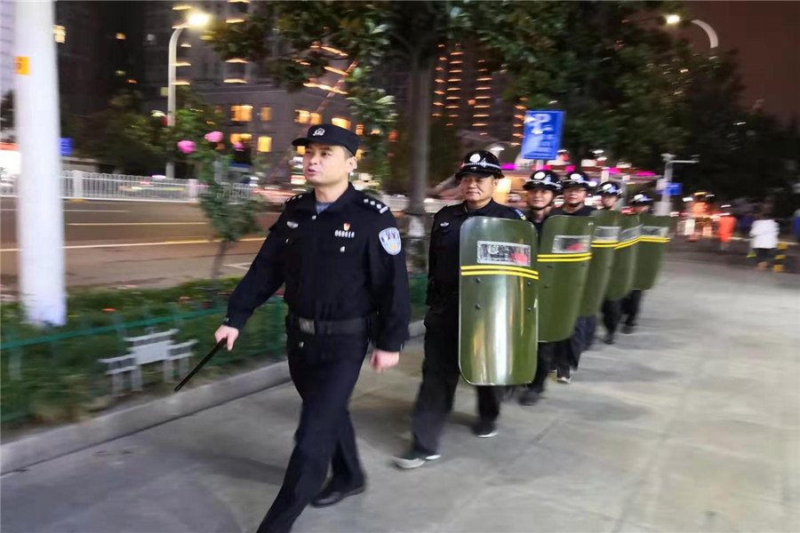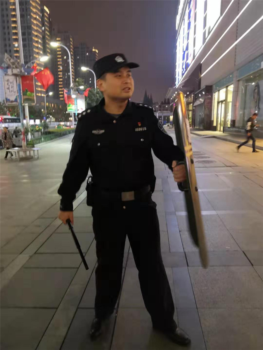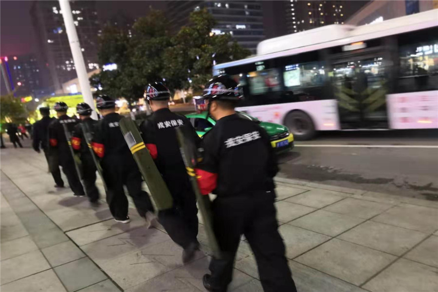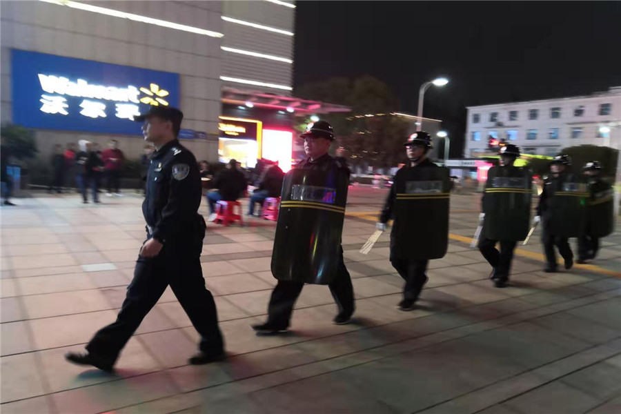2019年10月9日樊城區(qū)公安分局內(nèi)保大隊(duì)陳鵬隊(duì)長(zhǎng)依然堅(jiān)守不放松“不忘初心、牢記使命”主題教育活動(dòng),并組織樊城區(qū)漢江派出所民警和戎安保安服務(wù)有限公司保安隊(duì)員,在樊城區(qū)人員密集場(chǎng)所開(kāi)展義務(wù)巡邏。